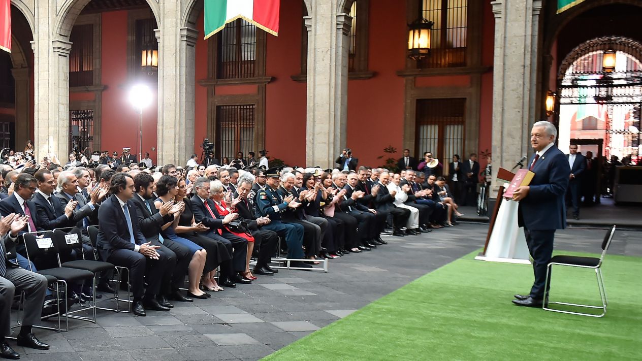 Durante su discurso por el Primer Informe de Gobierno en Palacio Nacional, frente a gobernadores, funcionarios del gabinete, órganos autónomos y sociedad civil, dijo que “es mucho lo alcanzado en pos de los ideales de honestidad, justicia, legalidad y democracia. Con lo conseguido en apenas nueve meses bastaría para demostrar que no estamos viviendo un mero cambio de gobierno, sino un cambio de régimen, y que esto no ha sido ni será más de lo mismo; por el contrario, está en marcha una auténtica regeneración de la vida pública”.