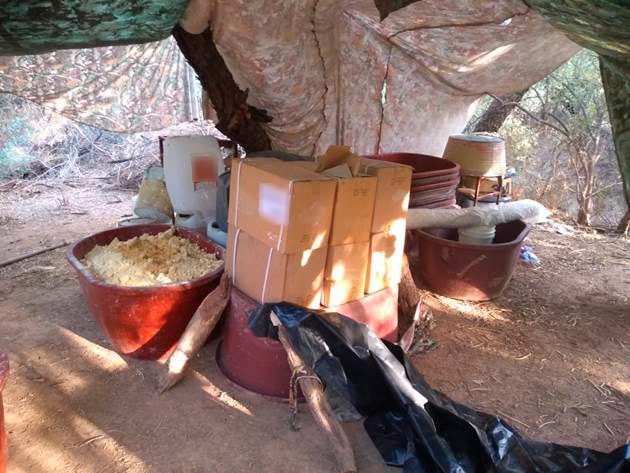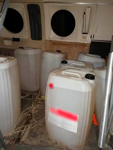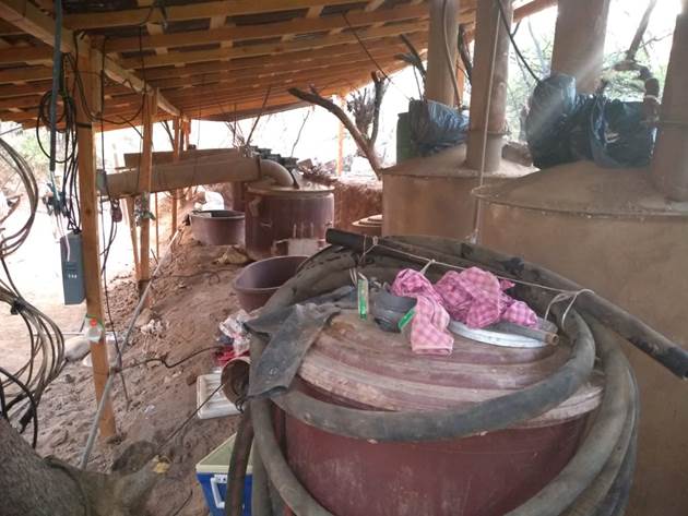 ● En el municipio de General Plutarco Elías Calles, Sonora, Sedena localizó un laboratorio clandestino de drogas sintéticas y aseguró alrededor de 7 mil 250 litros de tolueno, acetona, ácido clorhídrico, metanol y sustancias desconocidas, así como 7 mil 135 kilos de hidróxido de sodio, ácido tartárico, sosa cáustica y sustancias desconocidas. También fueron decomisados 2 reactores para síntesis orgánica, 19 quemadores para el crystal y un remolque.