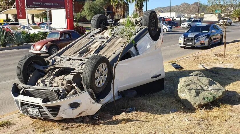 Al ver no poder controlar la unidad cuando este último vehículo le cortó el paso, la conductora se impactó contra el pick up y al perder el control de la unidad, provocó la volcadura, quedando el automóvil con las llantas hacia arriba.