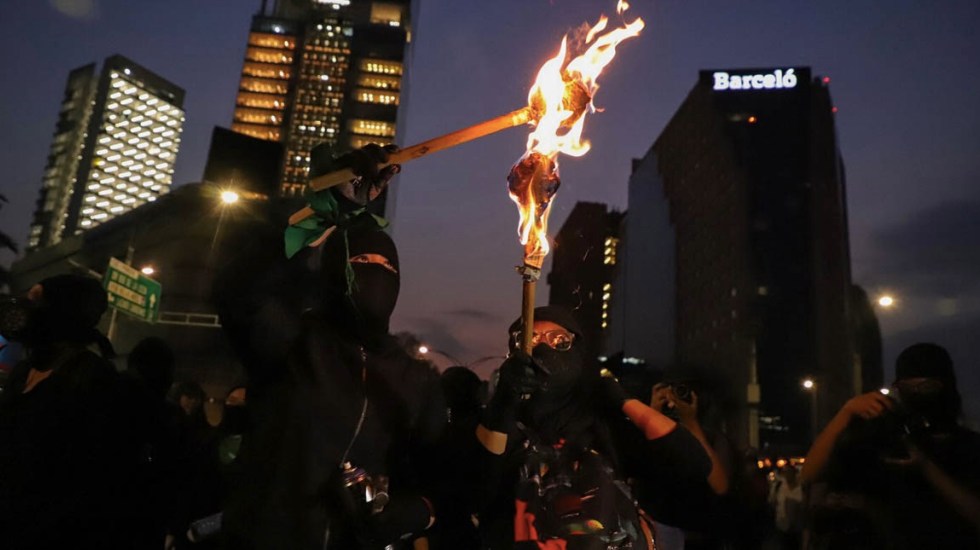 “La mayor parte de las asistentes a la marcha se manifestaron de forma pacífica, sin embargo, durante la ruta un pequeño grupo de personas con el rostro cubierto ocasionaron daños en algunos parabuses de Paseo de la Reforma, así como pintas en diversos monumentos, en algunos casos intentaron prender fuego, mismo que fue controlado de manera inmediata por las policías capitalinas”, apuntó.