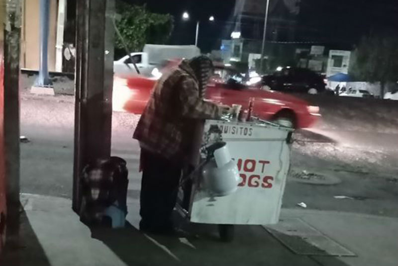 A través de redes sociales se hizo viral la imagen de una persona de la tercera edad encargada de un carrito de hot dogs, en San Juan del Río, Querétaro.