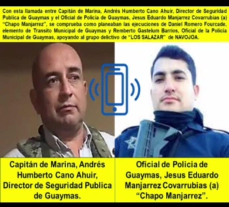 Incertidumbre en Guaymas Sonora entre población y autoridades al darse a conocer la grabación de una llamada entre el director de la Policía Municipal, Capitán de Marina, Andrés Humberto Cano Ahuir, y uno de sus subalternos al momento cuando planeaban, supuestamente, la ejecución de al menos dos oficiales de la misma corporación.