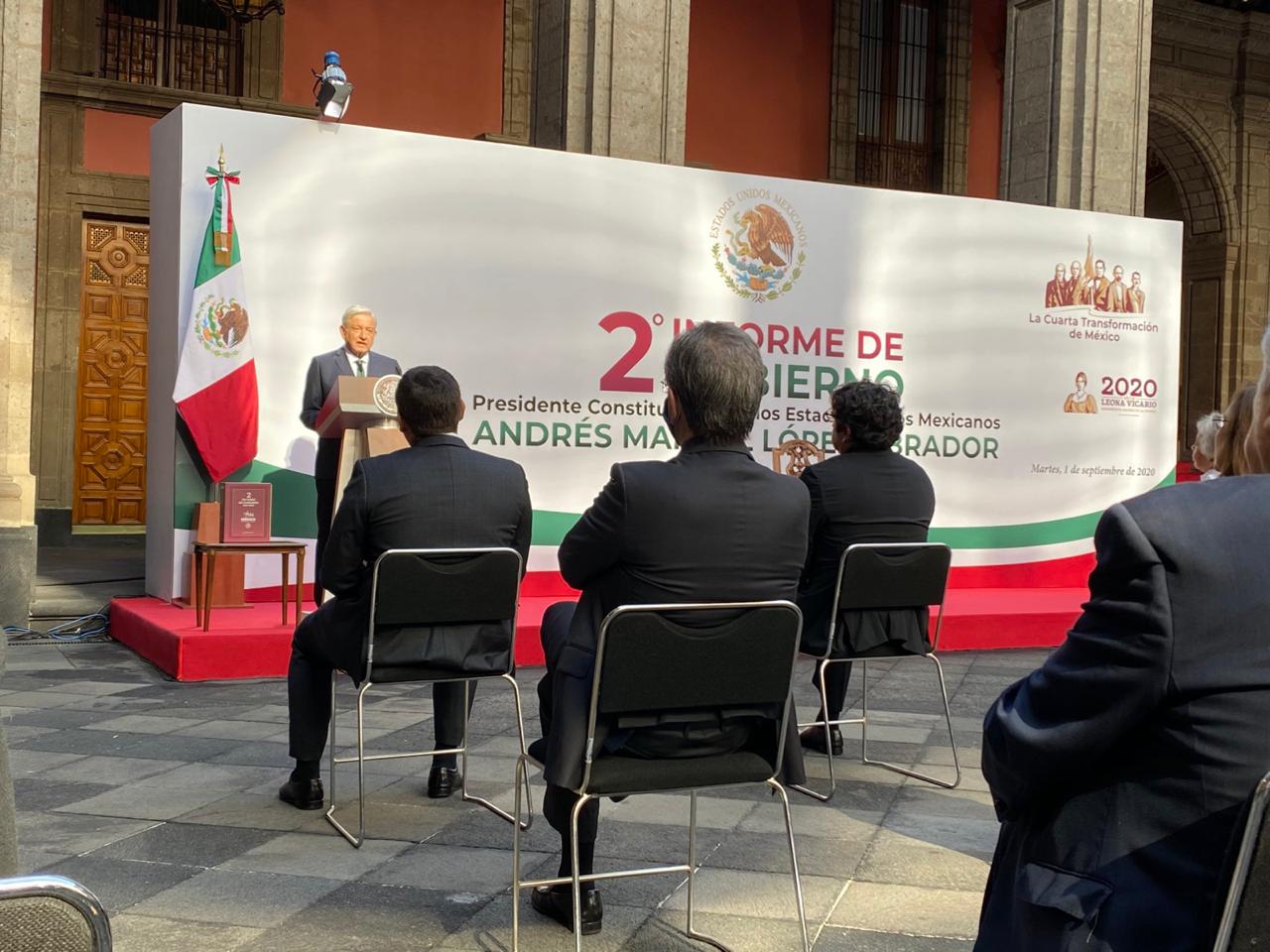 El presidente Andrés Manuel López Obrador ofrece su segundo Informe de Gobierno desde el patio cental del Palacio Nacional, donde aseveró que “en el peor momento, tenemos el mejor Gobierno”, haciendo referencia a la crisis que vive el México por la pandemia de Covid-19.