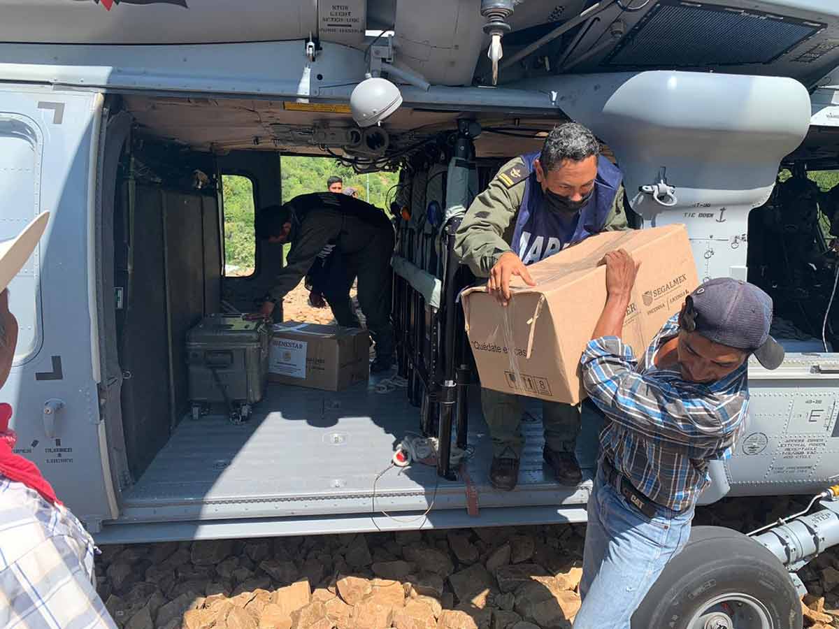 Para las labores de traslado, la Cuarta Región Naval designó un helicóptero Black Hawk, así como personal de Almirantes, Capitanes, Oficiales, Clases y Marinería, quienes dirigirán y llevarán a cabo el traslado y entrega de 300 cajas con productos alimenticios de canasta básica.