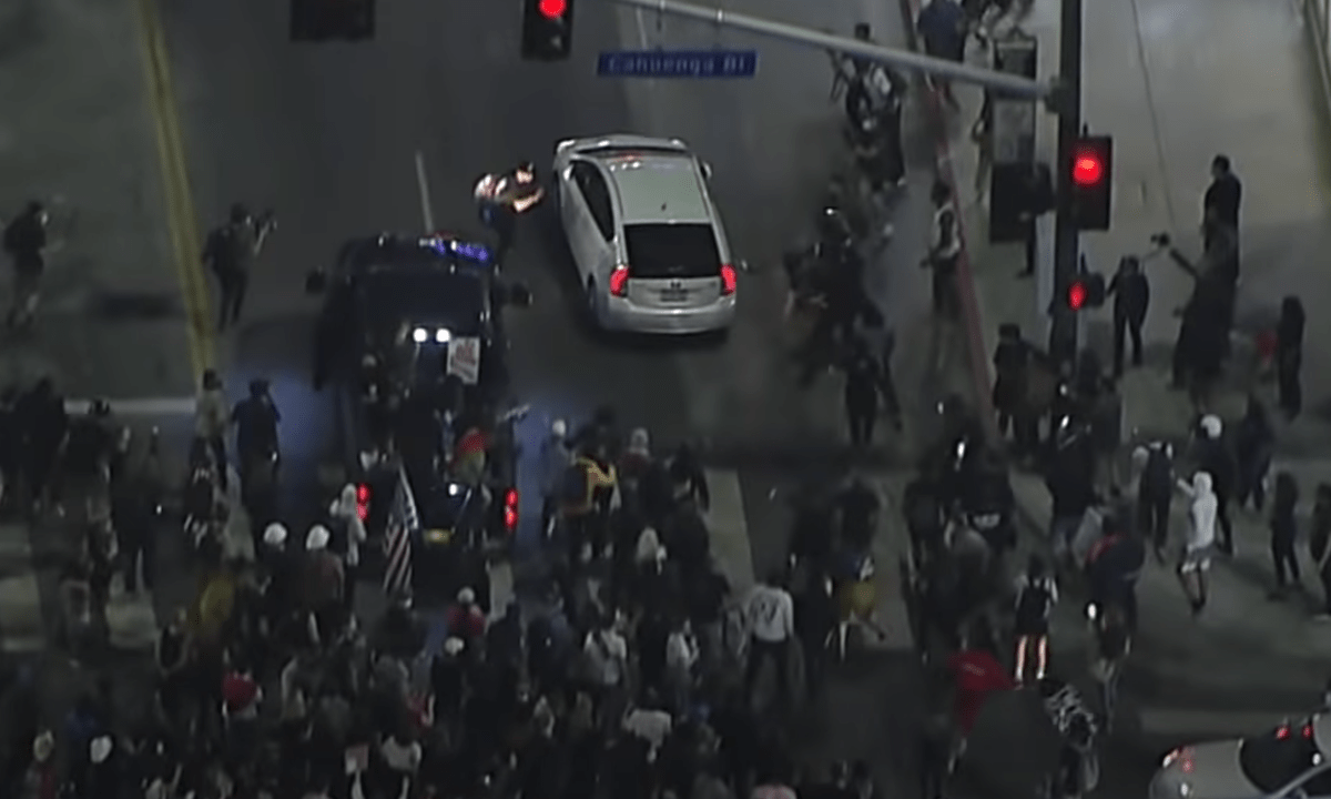 En otro momento de la noche, un Prius blanco trató de evadir a los manifestantes sobre Hollywood Boulevard. En imágenes captadas por el medio, se observa cómo los manifestantes rodean el vehículo y luego lo persiguen.