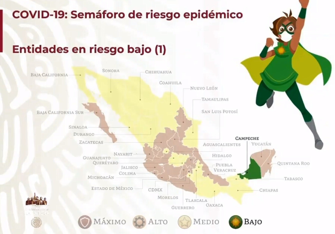 Este viernes, Campeche se convirtió en el primer estado en pasar a color verde en el semáforo de riesgo epidémico que presenta la Secretaría de Salud por la pandemia del Covid-19.