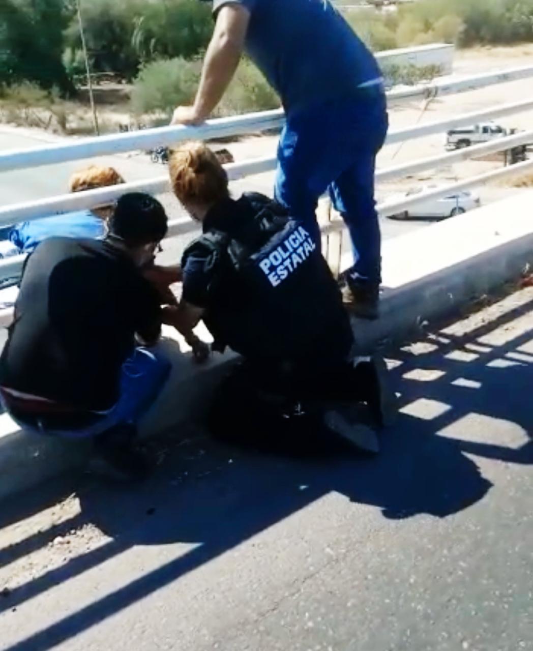 Con la fuerza del brazo de una mujer Policía Estatal se evitó que la joven se lanzara desde la altura del puente vehicular ubicado en bulevar Quiroga y Quintero Arce.