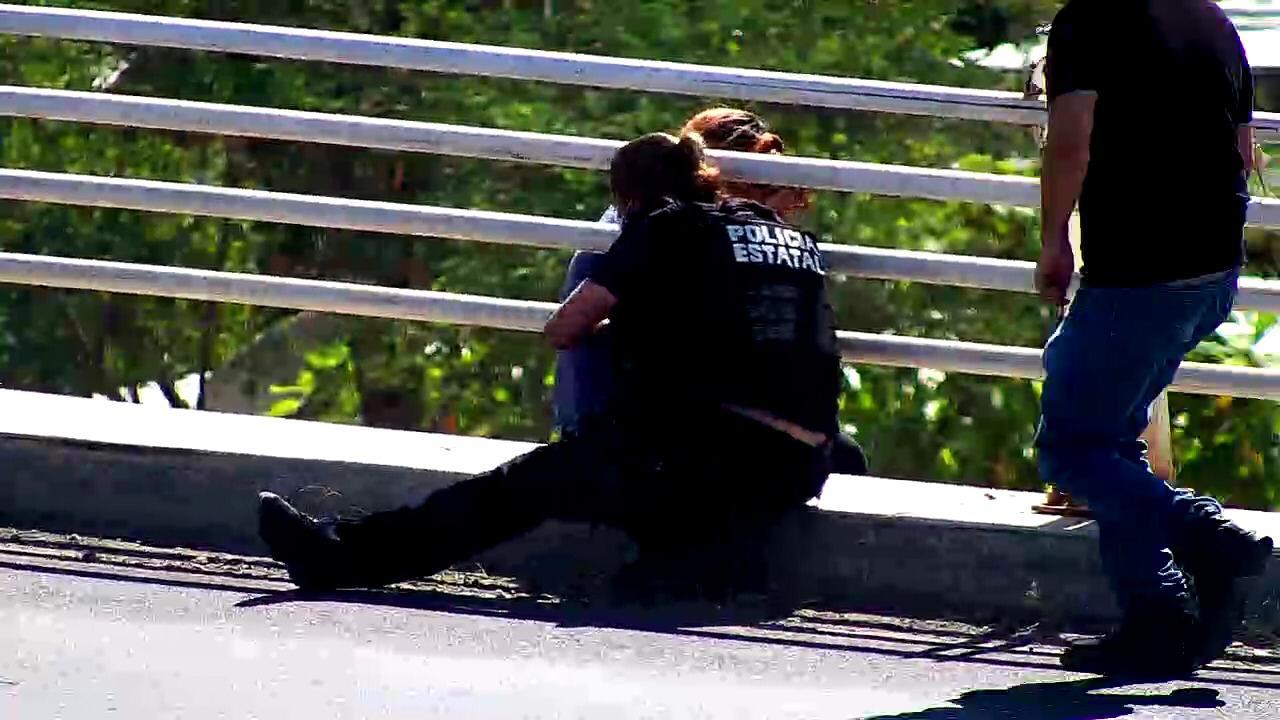 Personal del número de emergencia 9-1-1 alertó sobre los hechos, y unidades de la PESP que se desplazaban cerca de la zona arribaron al lugar donde vieron a la persona sentada sobre la orilla de la parte alta del puente, varios ciudadanos dialogaban para que no se arrojara, sin embargo, una Policía Estatal se desplazó por la parte trasera y sujetó a la mujer para dialogar hasta ponerla a salvo.