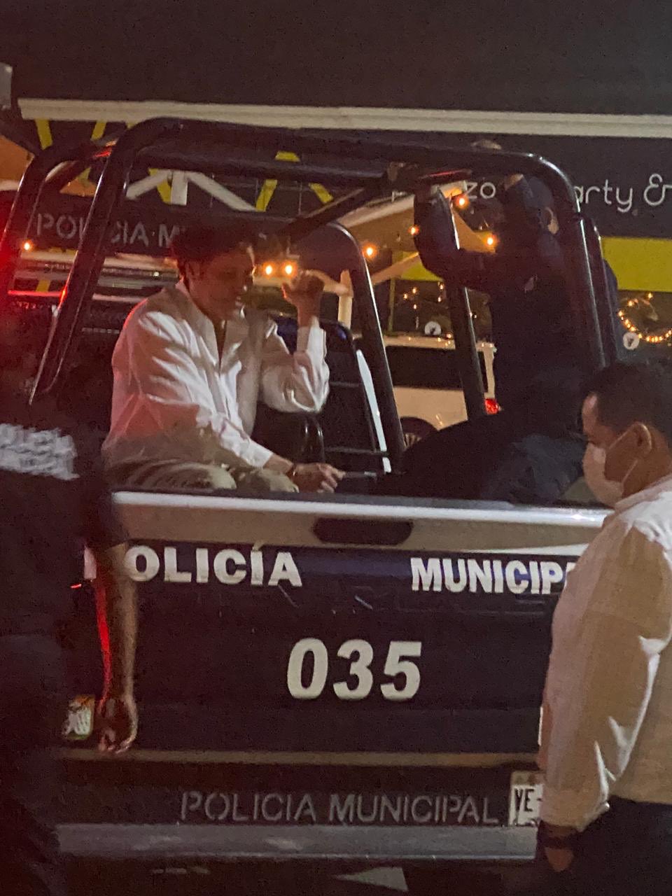 Sin embargo, en la medianoche de este sábado fue sacado a empujones del restaurante por meseros y personal de seguridad; afuera fue detenido por los oficiales y trasladado a los separos policiacos.