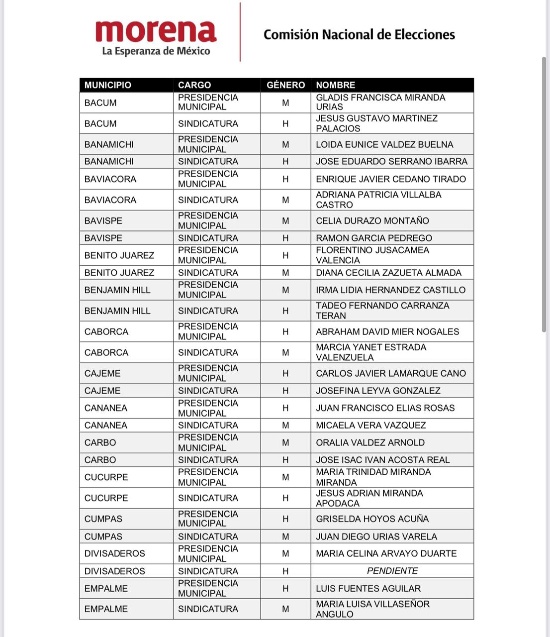 Aprueba Morena candidaturas para Alcaldías en Sonora