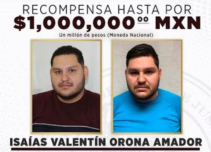Hermosillo, Son.- La Fiscalía General de Justicia del Estado (FGJE) ofrece una recompensa hasta por un millón de pesos a quien proporcione información de Isaías Valentín Orona Amador “El Cardenal” o “El Comanche”, por su probable responsabilidad por los delitos de homicidio, desaparición cometida por particulares y otro.