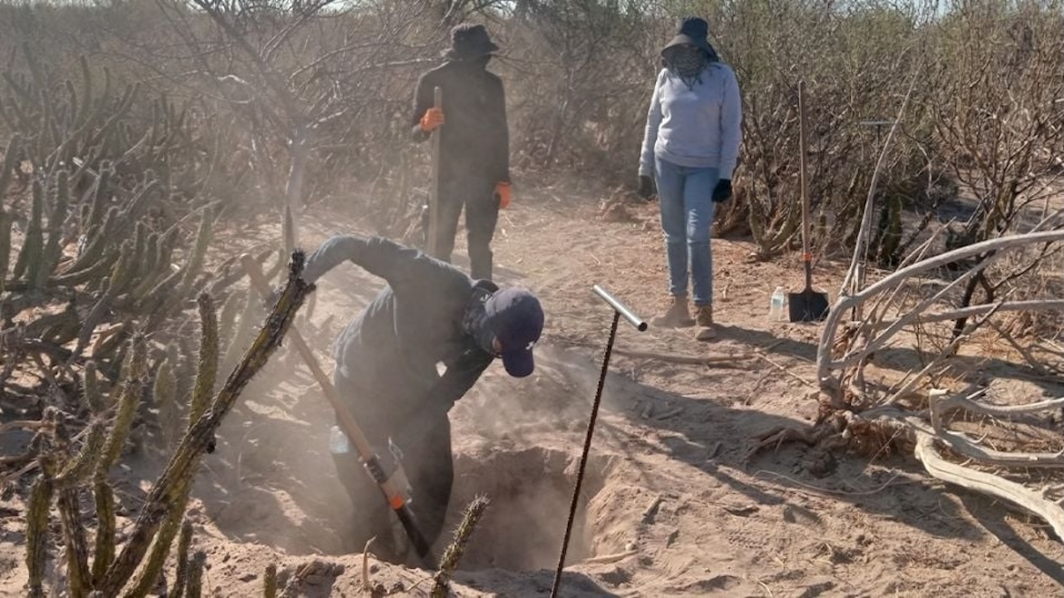 En ellas se observa un área de desierto con algunos puntos acordonados, con los integrantes del colectivo excavando en algunas zonas.