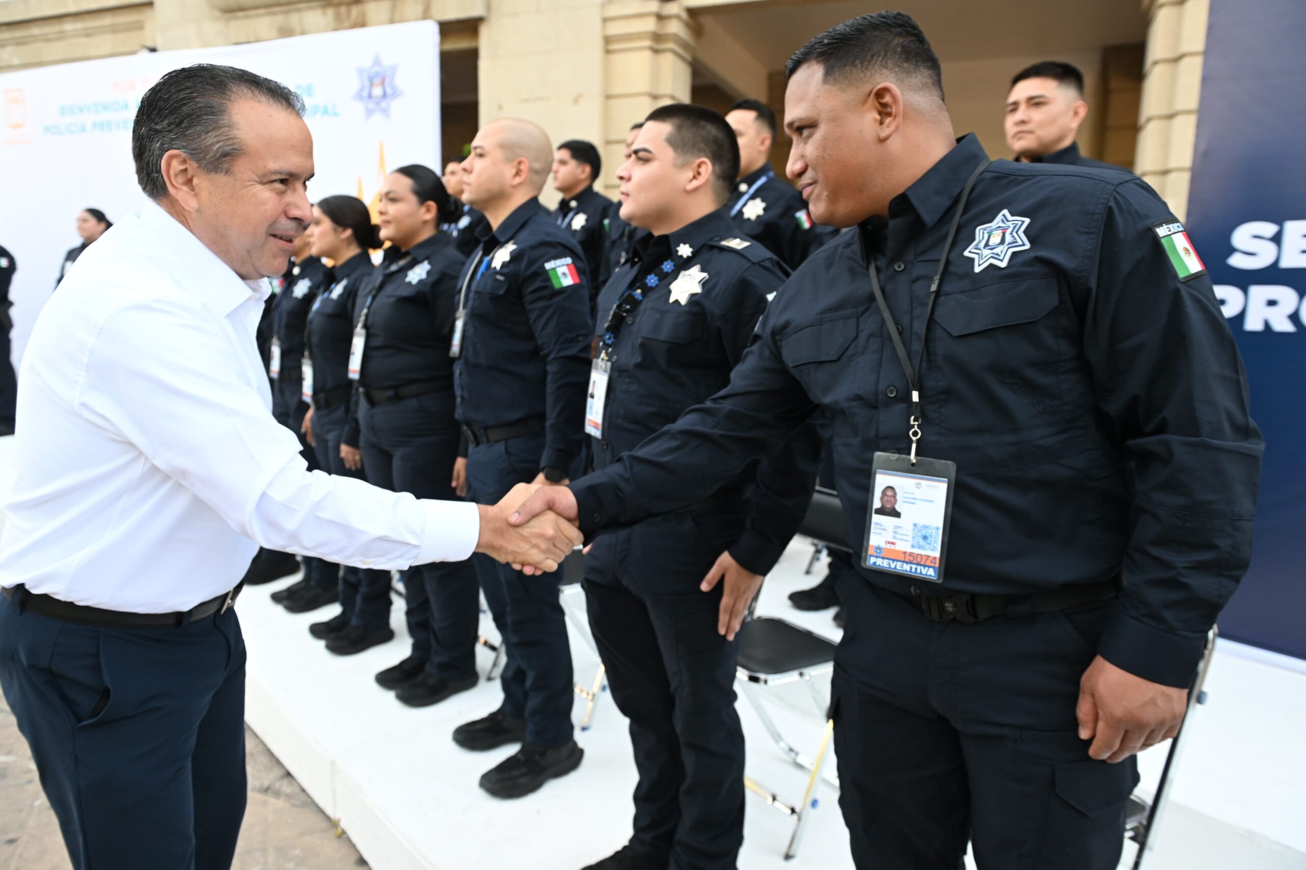 “Compañeros, sean bienvenidos y los animo a que recuerden siempre los valores de respeto, integridad y profesionalismos que son pilares esenciales en nuestra labor. A nuestros jefes, Alcalde y a toda la comunidad les digo que estamos listos para trabajar juntos en esta importante misión, sé que juntos haremos de nuestra ciudad un lugar más seguro y tranquilo para todas y todos. Vamos a servir con honor”, expresó, Gloria Hayde Cruz nueva elemento.