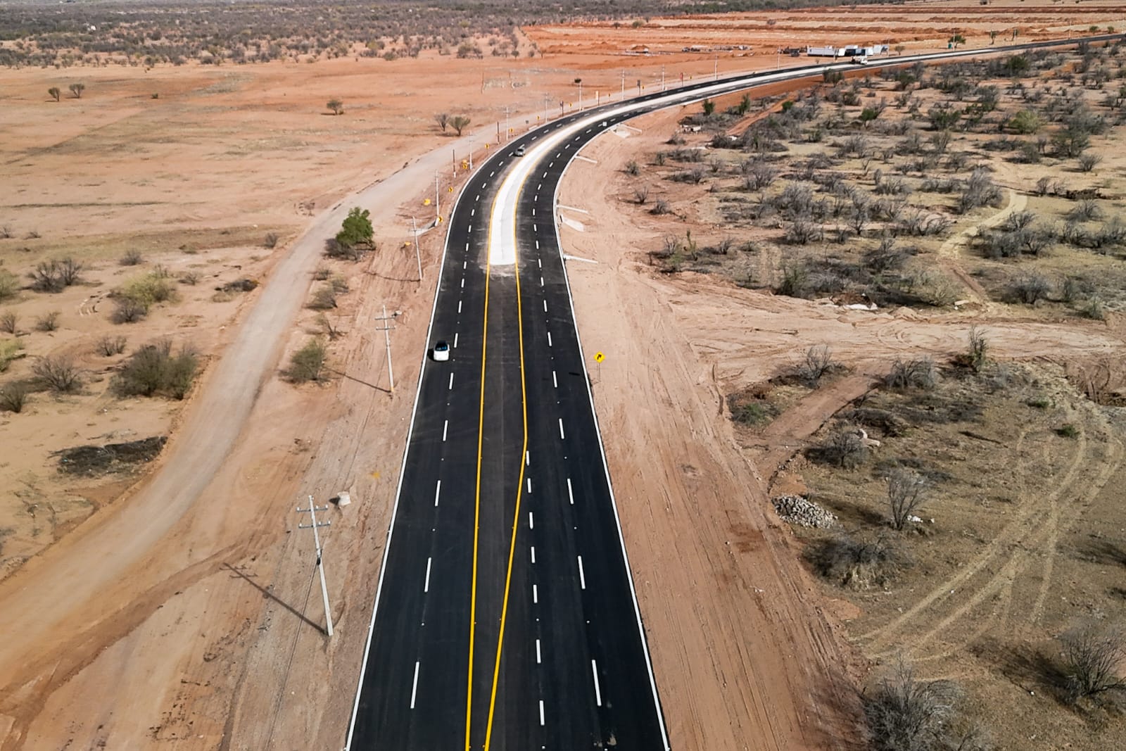 Lo acompañaron Astarté Corro Ruiz, titular de la Dirección General de Desarrollo de Infraestructura (DGDI) y Alejandro Guerrero Comella, representante Legal de la concesionaria Seri, S.A. de C.V., a cuyo cargo estará la continuidad de la obra que recorrerá otros 15.1 kilómetros en segunda etapa y 11 .1 kilómetros en la tercera.